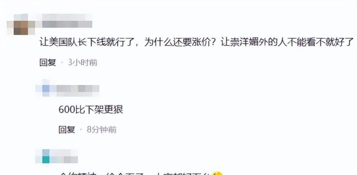 网友热议不少网友认为涨价实在没必要,直接下架就行,毕竟这种事让人看了真是又添话题。不过,也有网友提到合约精神得有,大家还是要讲道理。而且这600的价格感觉比直接下架更让人受不了,电影就在眼前却不能看,这真的是最折磨人的了。