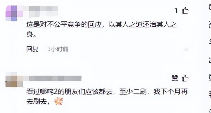 有些网友觉得这其实就是对不公平竞争的一种反应,毕竟美国也这样做过嘛,这也是没啥大不了的。大家都是第一次碰到这种事,稍微小气点也算正常。哪吒真的是一部让人回味无穷的动画片,里面的许多道理都是网友们以前想都没想过的,尤其是那句:人心中的成见就像一座高山。第一部里说的这话,到了第二部又得到了验证。
