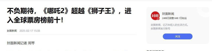 现如今,《哪吒2》已经逆袭超越了《狮子王》,成功挤进全球票房榜前十名。美国这番明目张胆的打压,让不少国人心里都难以平静。